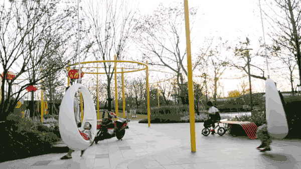組合秋千不僅僅設置不同尺寸的單人秋千,更體貼的配有親子秋千鼓勵成人與孩子共同參與,促成互動以增進情感交流。一并整合在大圓環里的還有攀爬與拉伸器械,讓全齡段的人群無邊界的在同...